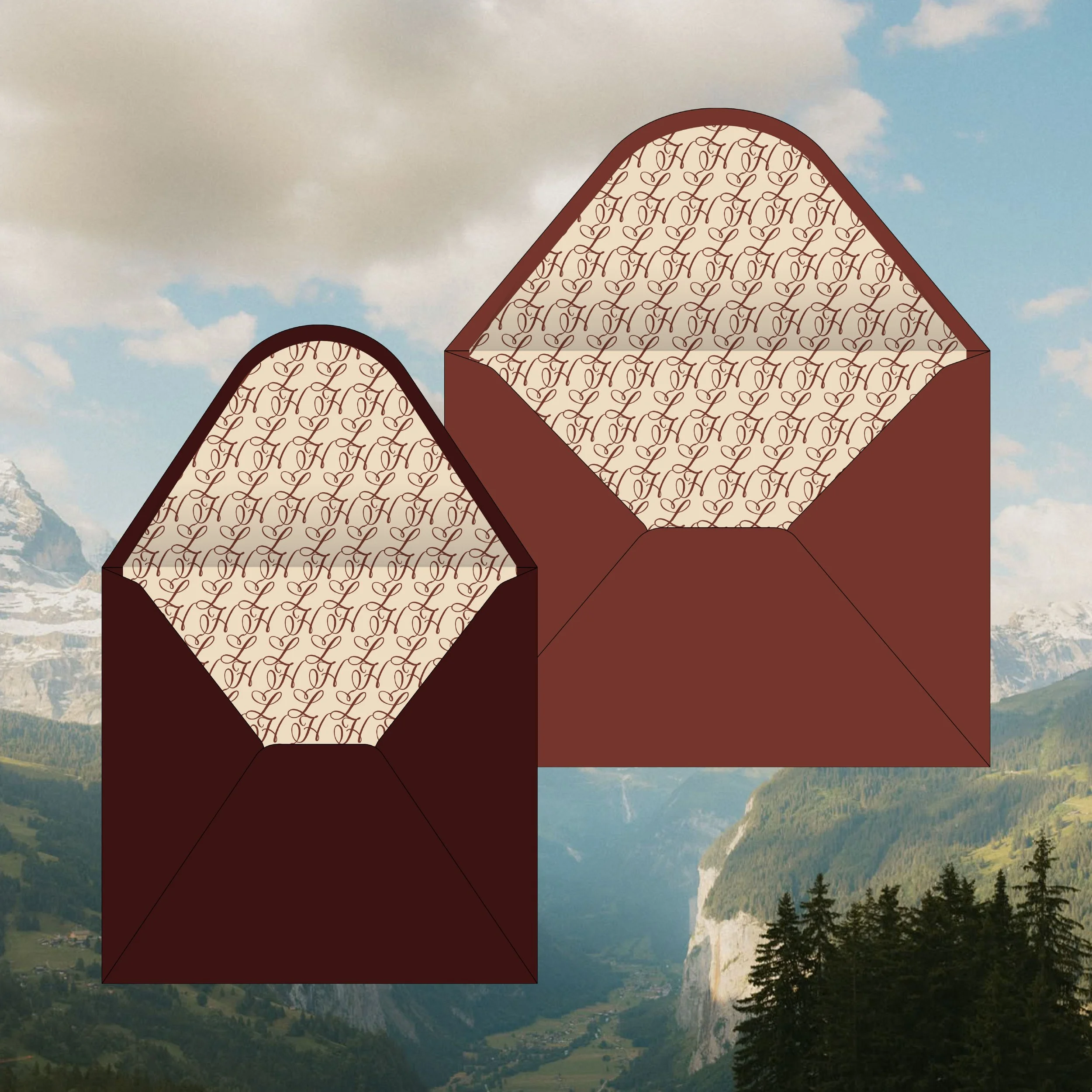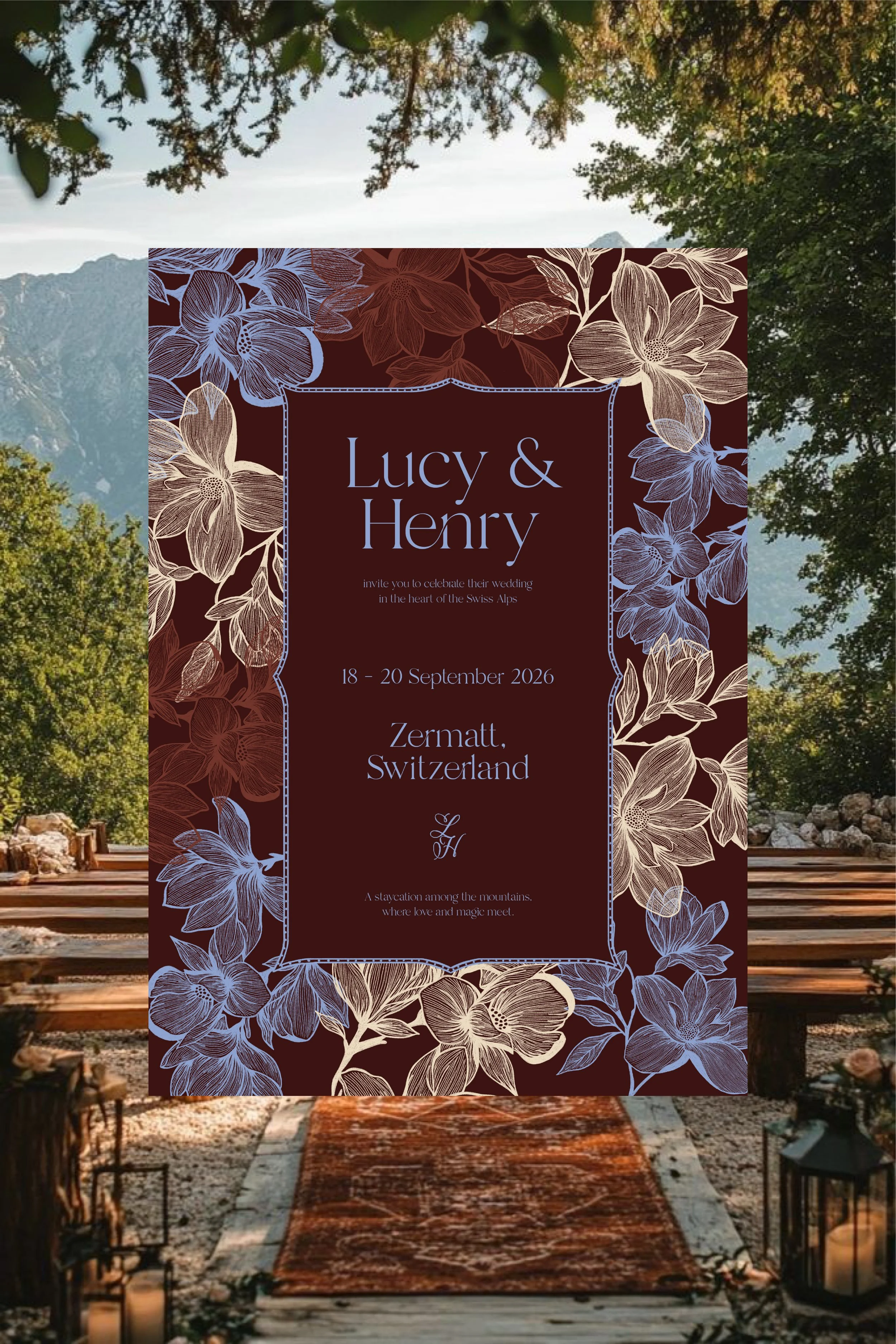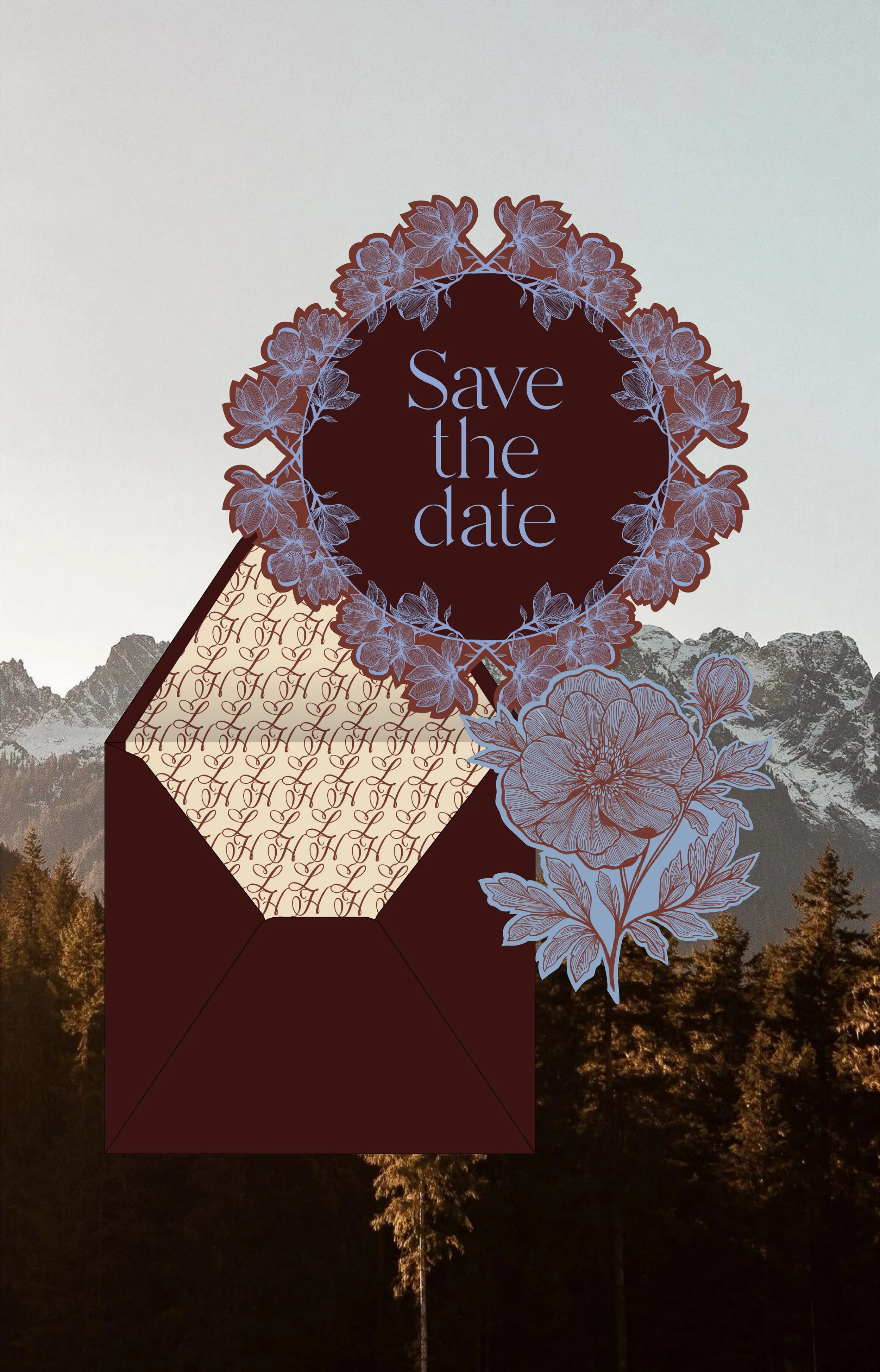 This wedding invitation suite combines timeless elegance with a contemporary touch, designed to perfectly complement a wedding set amidst the stunning Swiss Alps. From the save-the-date to the formal invitation and weekend details, Lucy and Henry envisioned something truly memorable, with flowers at the heart of their theme. Classic elements were reimagined with a modern colour palette inspired by the alpine landscape, while delicate custom-cut card shapes added an extra layer of sophistication to this dramatic floral suite.